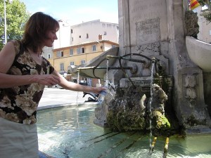This guy was giving an organ concert we got in on the end of at the cathedral. It was really amazing: the cathedral, the organ, that we got to hear him… I am so on vacation have I mentioned?Aix has lots of old fountains, apparently one can drink the fountain water – filling up my water bottle…