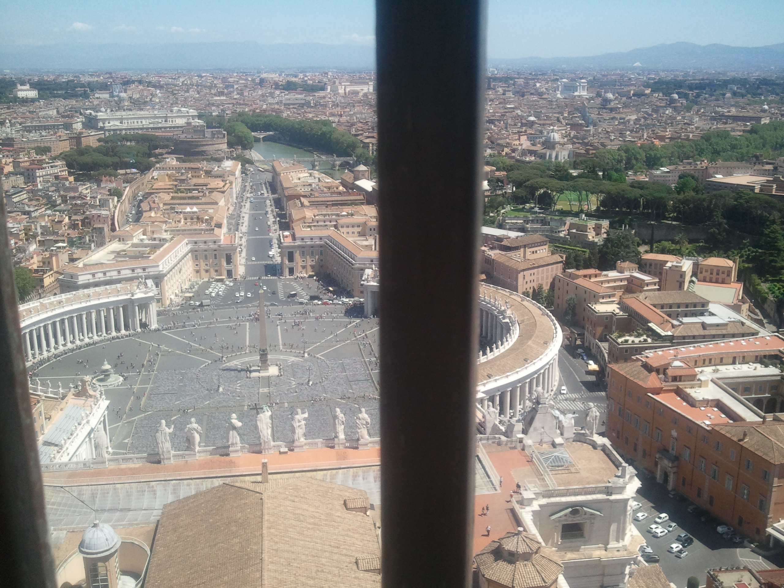 First, the Vatican (St Peters) was amazing! Incredible. Also, you can climb up to the top of the dome… first, you climb to the base of the dome, where you’re super high up on the roof and you can go inside (like a birds eye view of the church). Then, these super narrow stairs get you to the cupola (sp?).