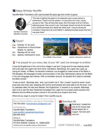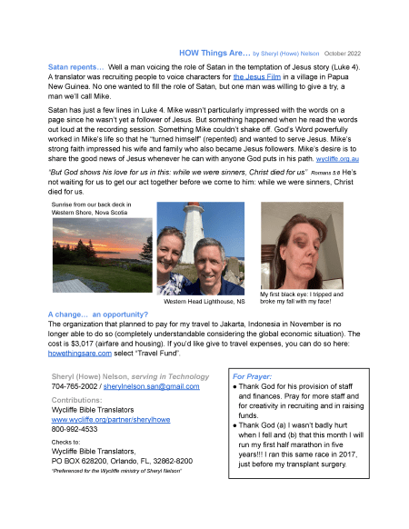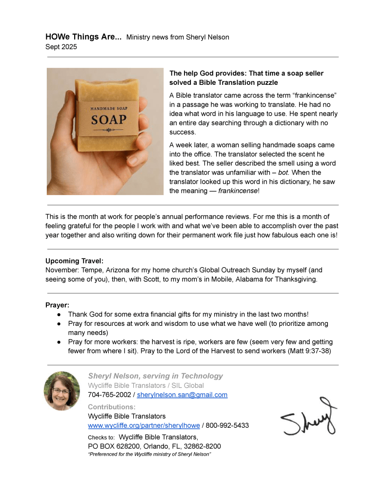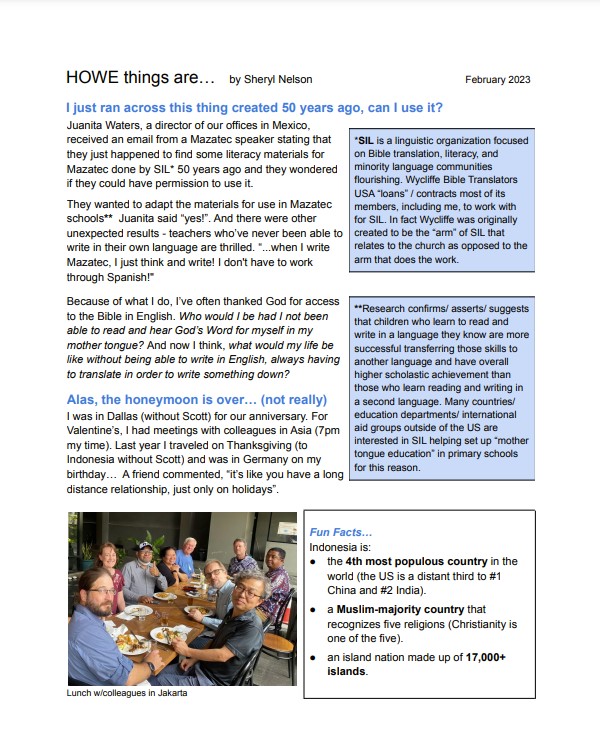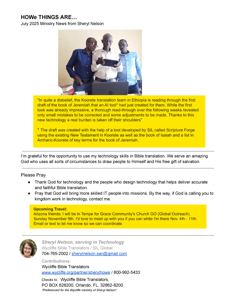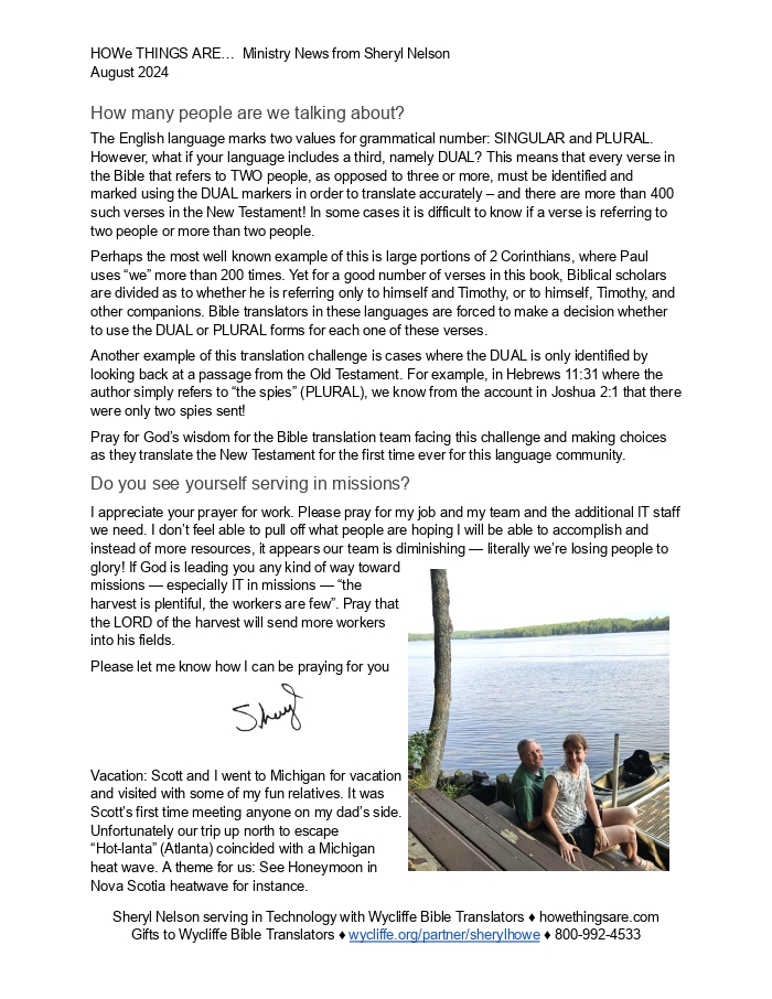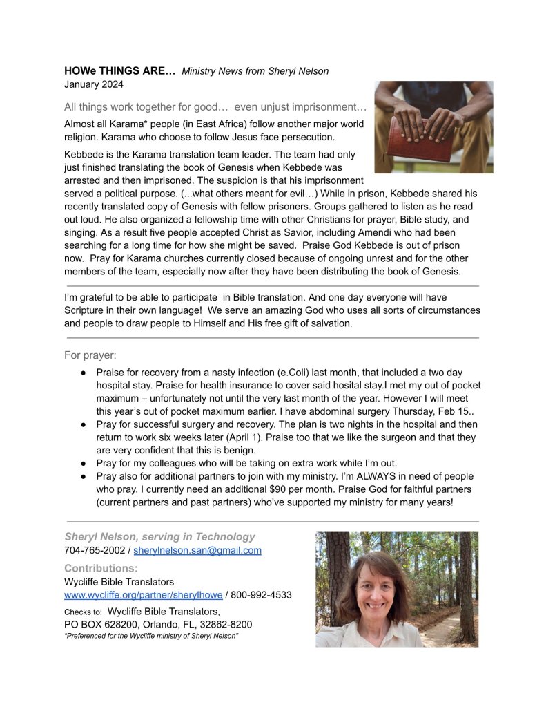 The Wycliffe Ministry of Sheryl (Howe) Nelson