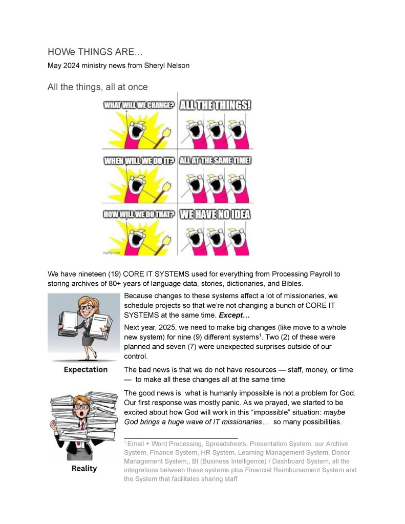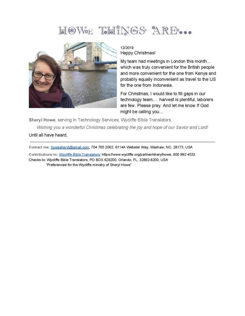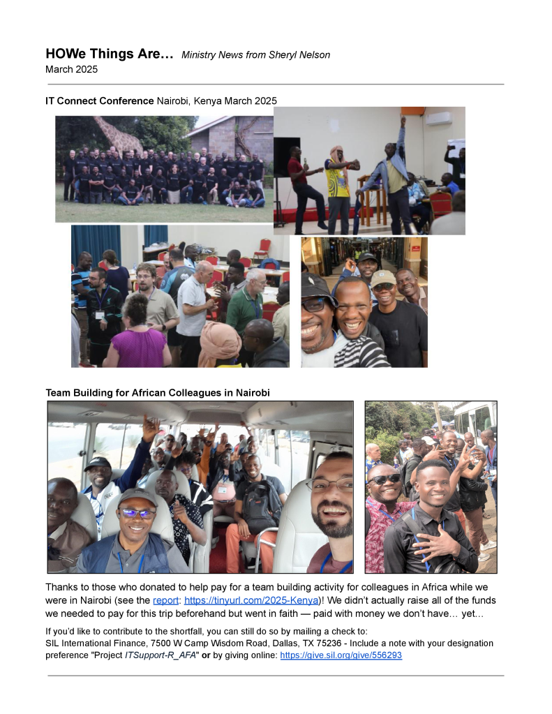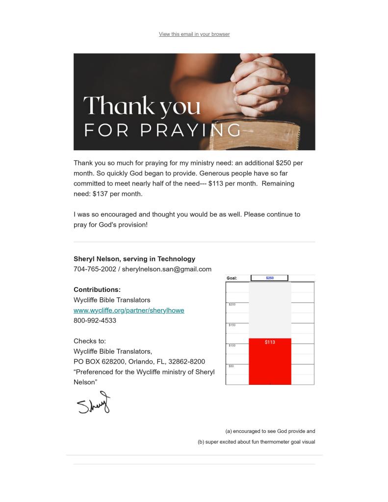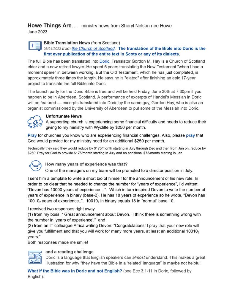 The Wycliffe Ministry of Sheryl (Howe) Nelson