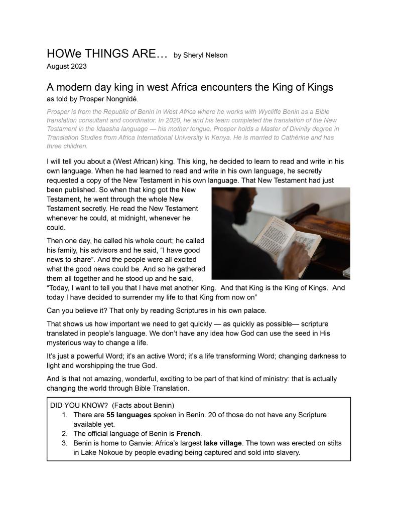 August 2023: About a king, the Republic of Benin and Sept Travel